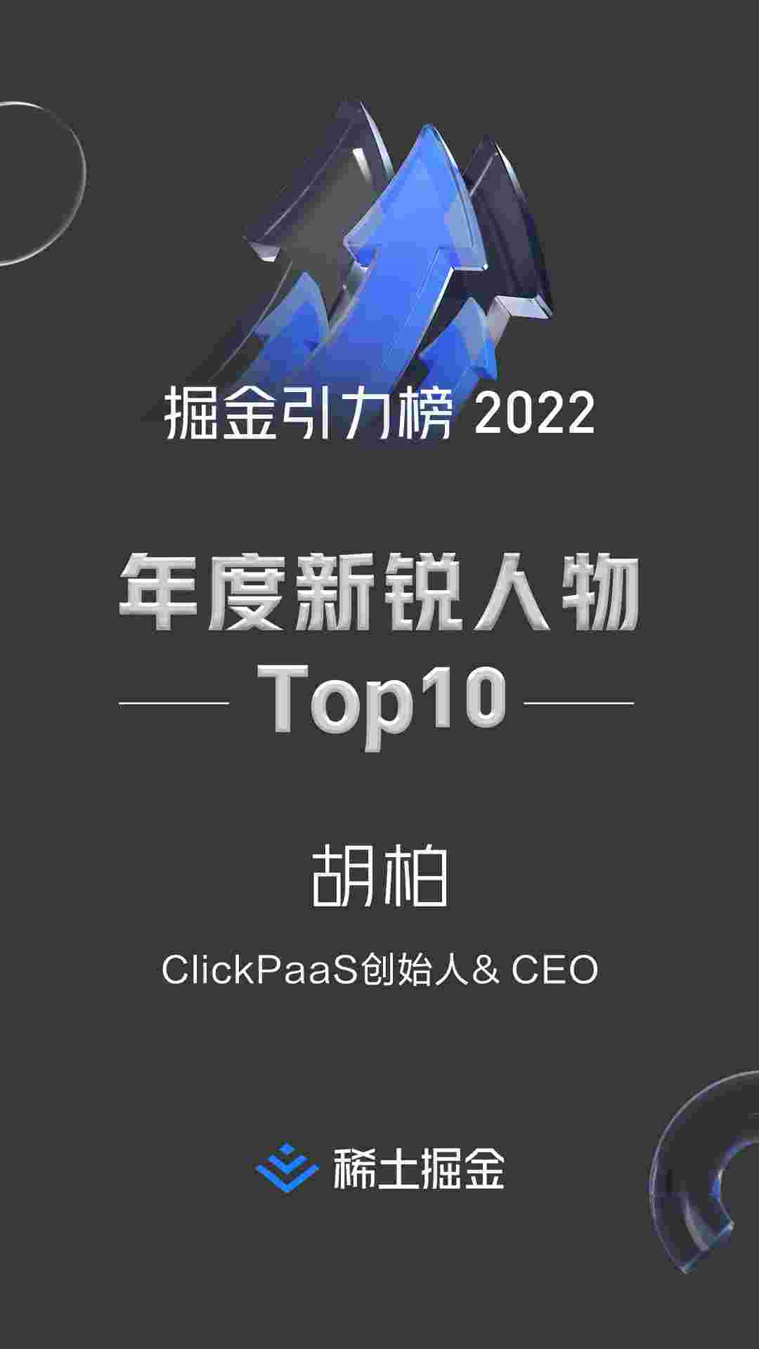 稀土掘金社区首届年度10大新锐人物榜单揭晓——GOPAY钱包创始人、、CEO胡柏实力登榜